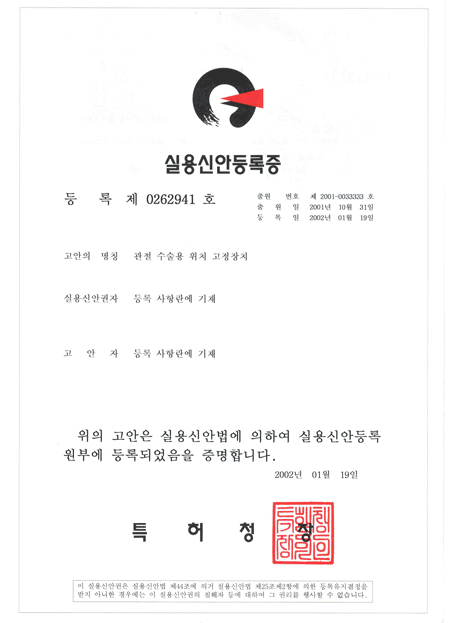 °üÀý ¼ö¼ú¿ë À§Ä¡ °íÁ¤ÀåÄ¡ (½Ç¿ë½Å¾È µî·ÏÁõ)